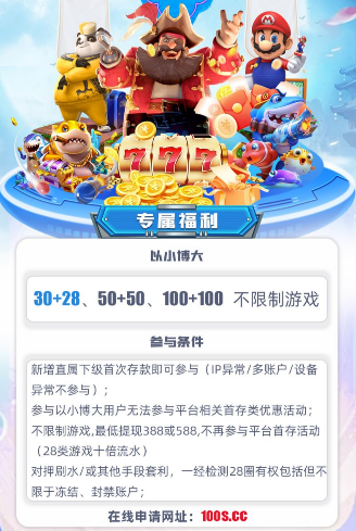 首存参加30+28、50+50、100+100 (不限制游戏 盈利388或588提现,或十倍流水提现 多账户不参与 ) 首存活动只能参加一个,参加100+100 其他首存活动都无法参与。